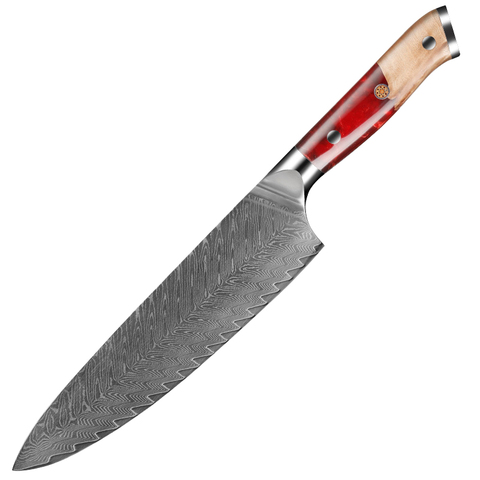 Resina Red Handle Profissional 8 Polegada VG10 Aço Damasco Faca De Chef